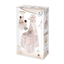 O pack inclui: Moisés para bonecas e bonecos com dossel e interior forrado, manta, almofada a condizer e mais detalhes luxuosos.