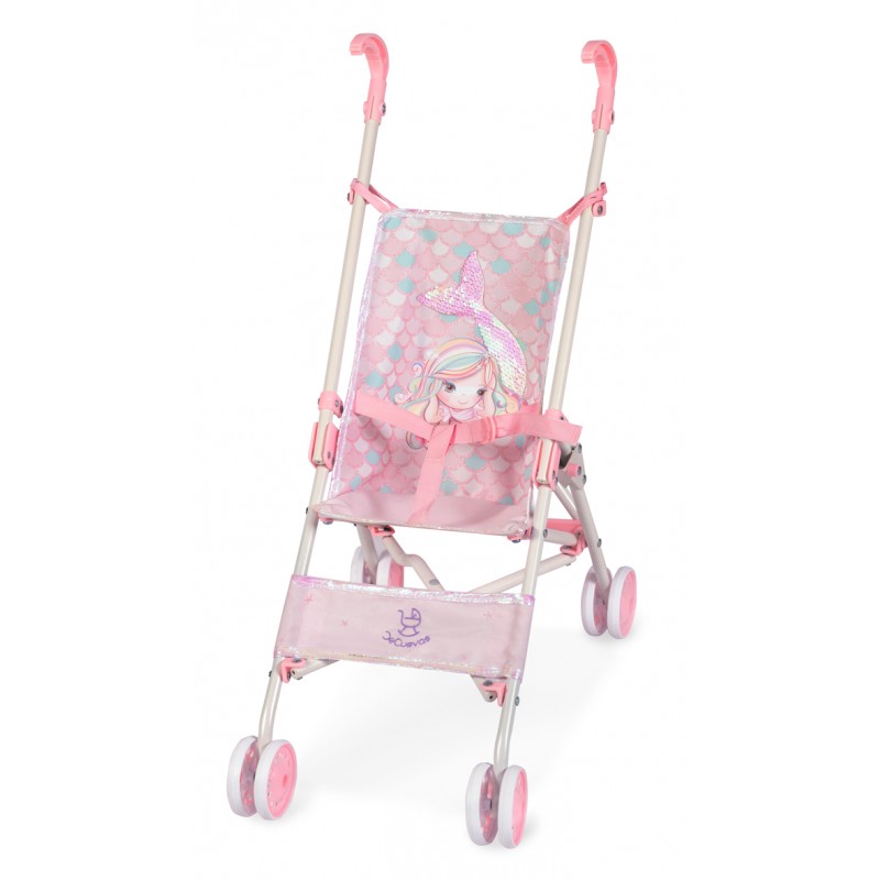 Fantástica cadeira de bonecas dobrável, da nova colecção Ocean Fantasy. Cores suaves e tons cor-de-rosa, são algumas das características dos novos desenhos. A cadeira de bonecas tem um apoio para os pés e rodas duplas, o que a torna fácil de manusear. Tem também um prático cinto de segurança para fixar os bonecos à cadeira. Pode dobrar a cadeira e armazená-la confortavelmente, graças à sua opção de dobragem. É feita com materiais de qualidade e com a garantia dos produtos DeCuevas. As crianças vão divertir-se muito, passeando pelo seu bairro ou pelo parque, com as suas bonecas e brinquedos preferidos. Dados a ter em conta: Dimensões aproximadas da cadeira aberta: 56 cm de altura (até ao guiador) x 28 cm de largura x 42 cm de comprimento. Dimensões aproximadas da cadeira fechada: 12 cm de altura x 9 cm de largura x 63 cm de comprimento. O pacote inclui: Carrinho de bonecas dobráveis da coleção Ocean Fantasy. Importante: Boneca de brinquedo não incluída na embalagem, vendida separadamente. Medida máxima recomendada para a boneca seria de 42 cm. Idade recomendada para utilização: + 3 anos.